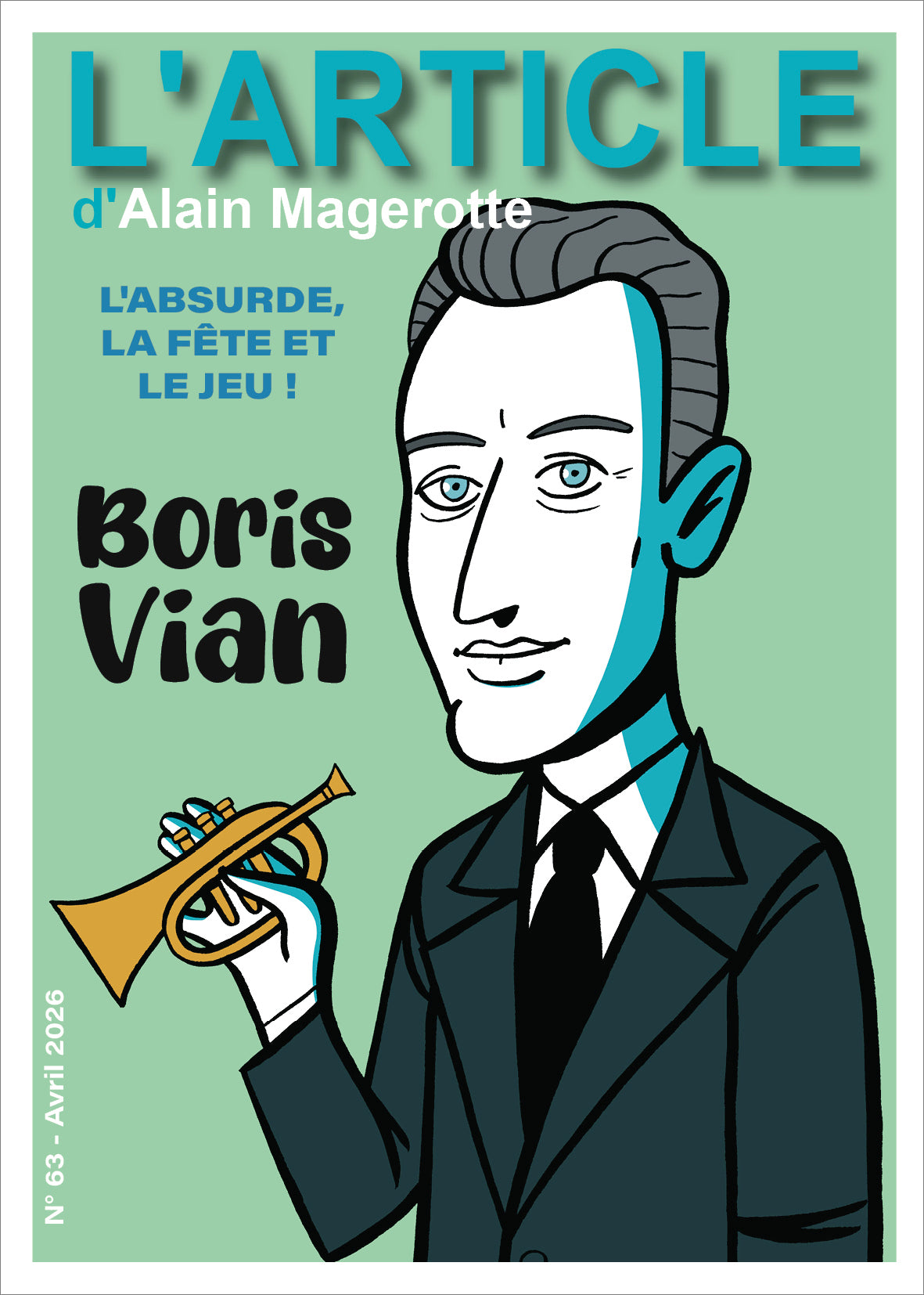 Je ne savais pas qu’il était possible d’avoir un tel style et que, du drame le plus profond, pouvaient surgir des jeux de mots en cataplasme, pour boucher les fissures du destin. Ou que du noir le plus absolu pouvait jaillir un trait acéré à la couleur de désespoir poétique. Chez Vian, on ressent, on souffre, on est moins que rien mais dans un éclat de rire glacial. Les phrases dansent une danse macabre mais irrésistible. La mort, il ne l’a pas vue venir d’assez loin, c’est comme ça qu’on meurt jeune. Mais il a su, malgré cela, marquer son temps ainsi que les générations suivantes par tant de formes d’art différentes, avec, toujours, l’instinct irrésistible de faire ce qui n’a jamais été fait, d’oser plus loin et plus fou. Et chaque génération peut le découvrir pour une raison différente, elles se valent toutes. Je n’en écrirai pas plus, vous laissant le plaisir de trouver par vous-même une raison de déraisonner avec Boris Vian, au fil du menu que nous a concocté Alain Magerotte dans cet Article en forme de déclaration d’amour féroce pour un auteur qui ne l’était pas moins.