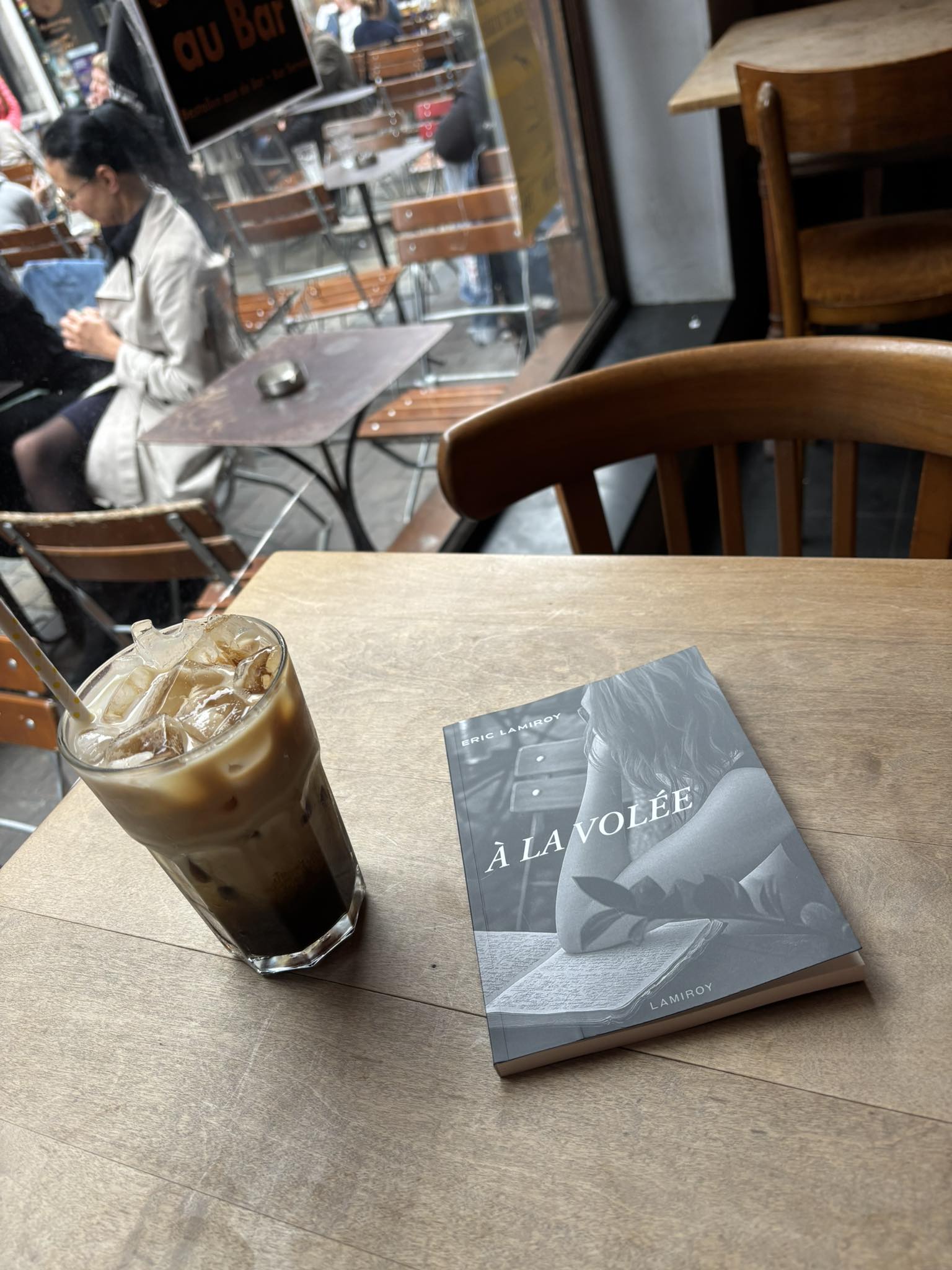Tout part d’un café frappé que je photographie alors qu’en arrière-plan, une fille sur la terrasse remplit les pages de son Moleskine à toute allure. Puisqu’elle me refile sa pulsion d’écriture, alors je lui vole cet instant. D’autres suivront.