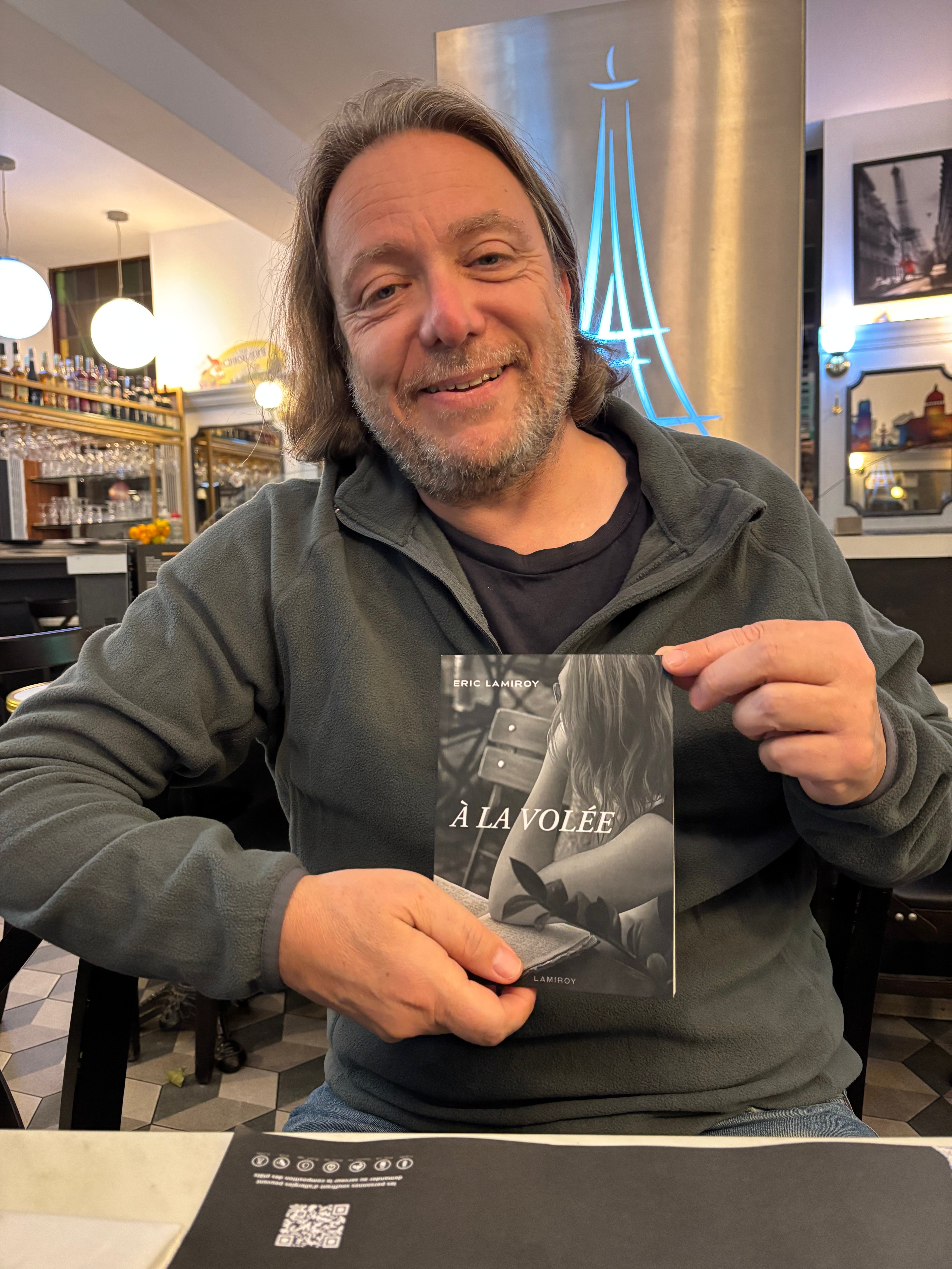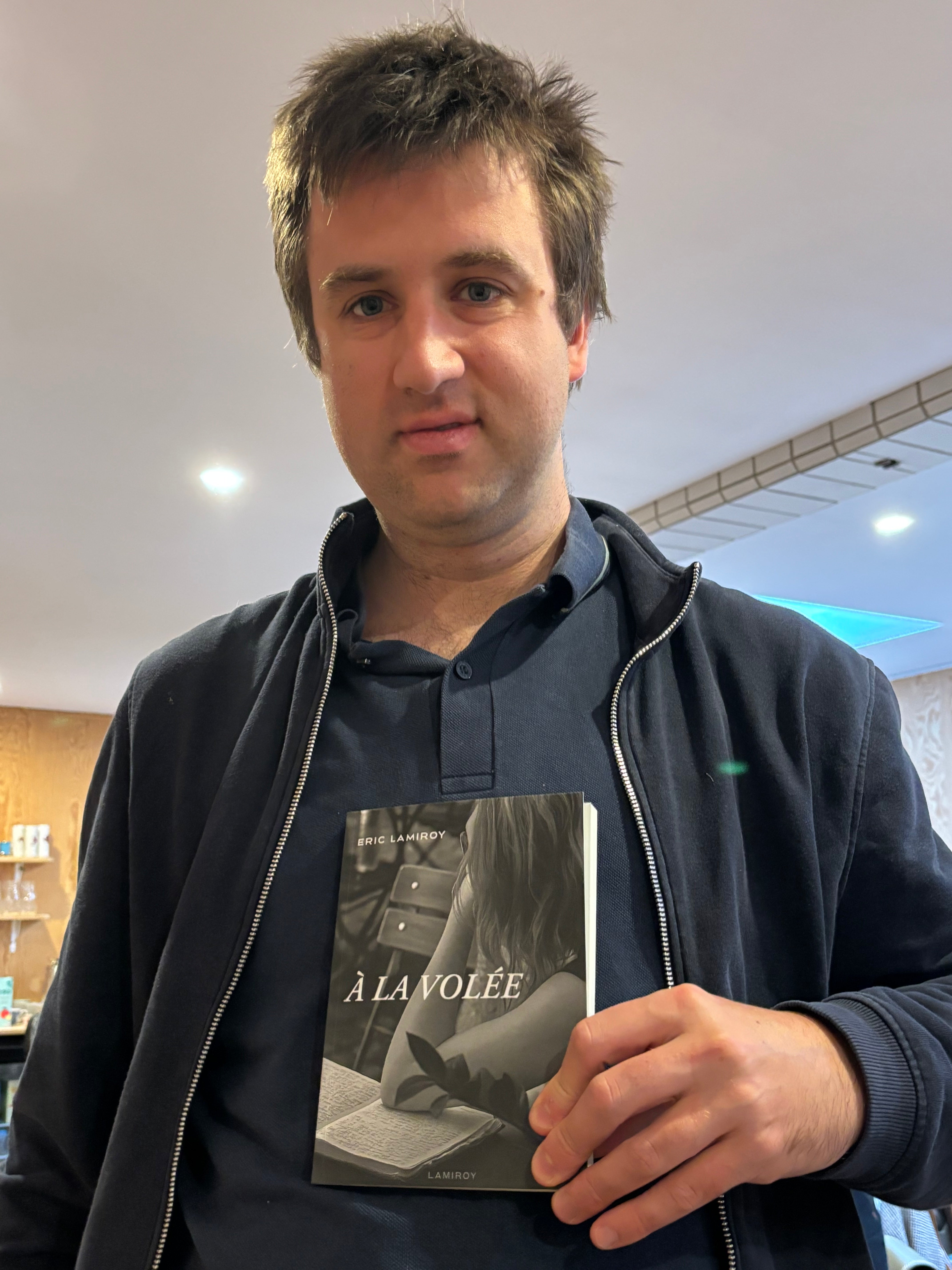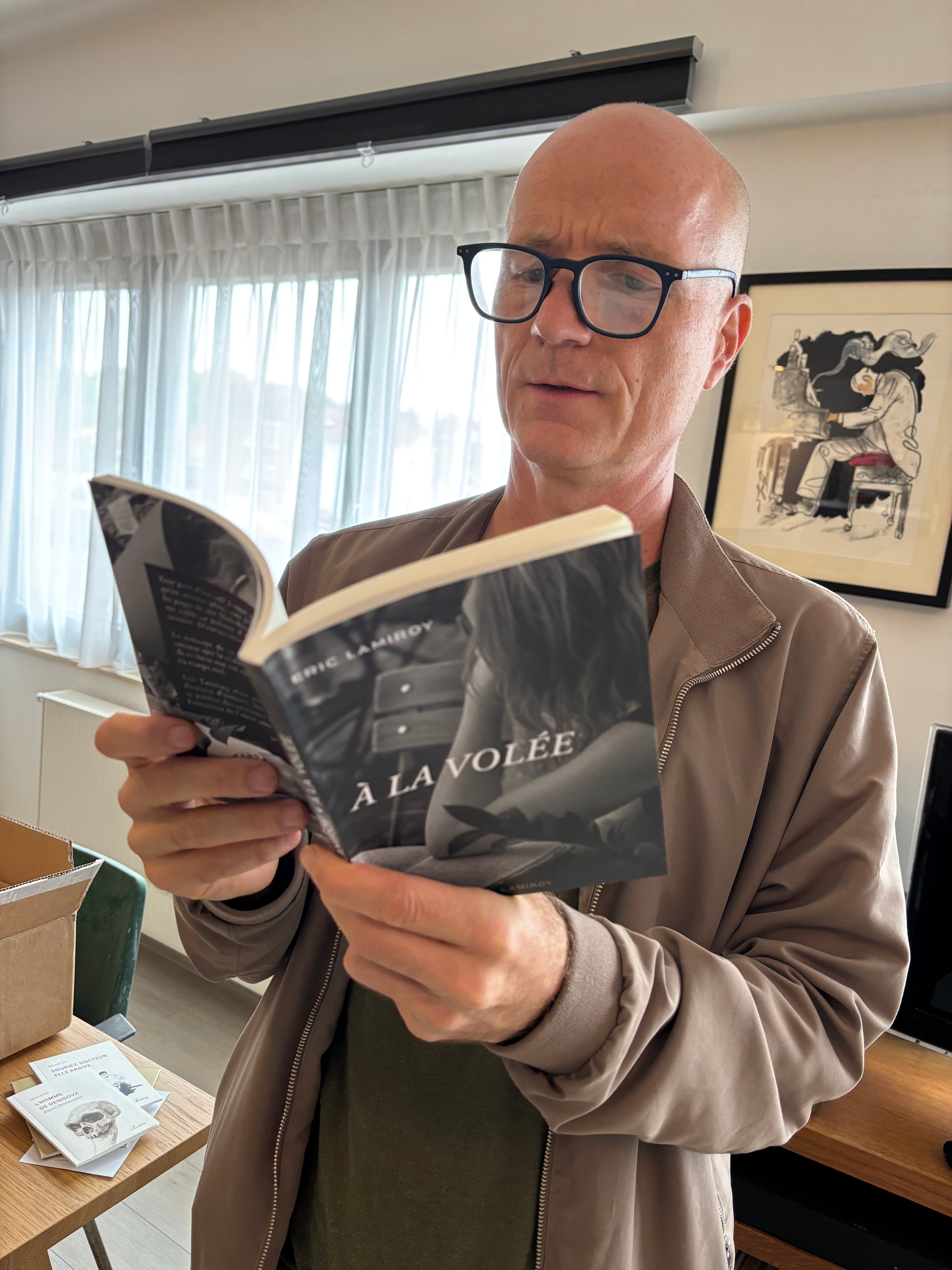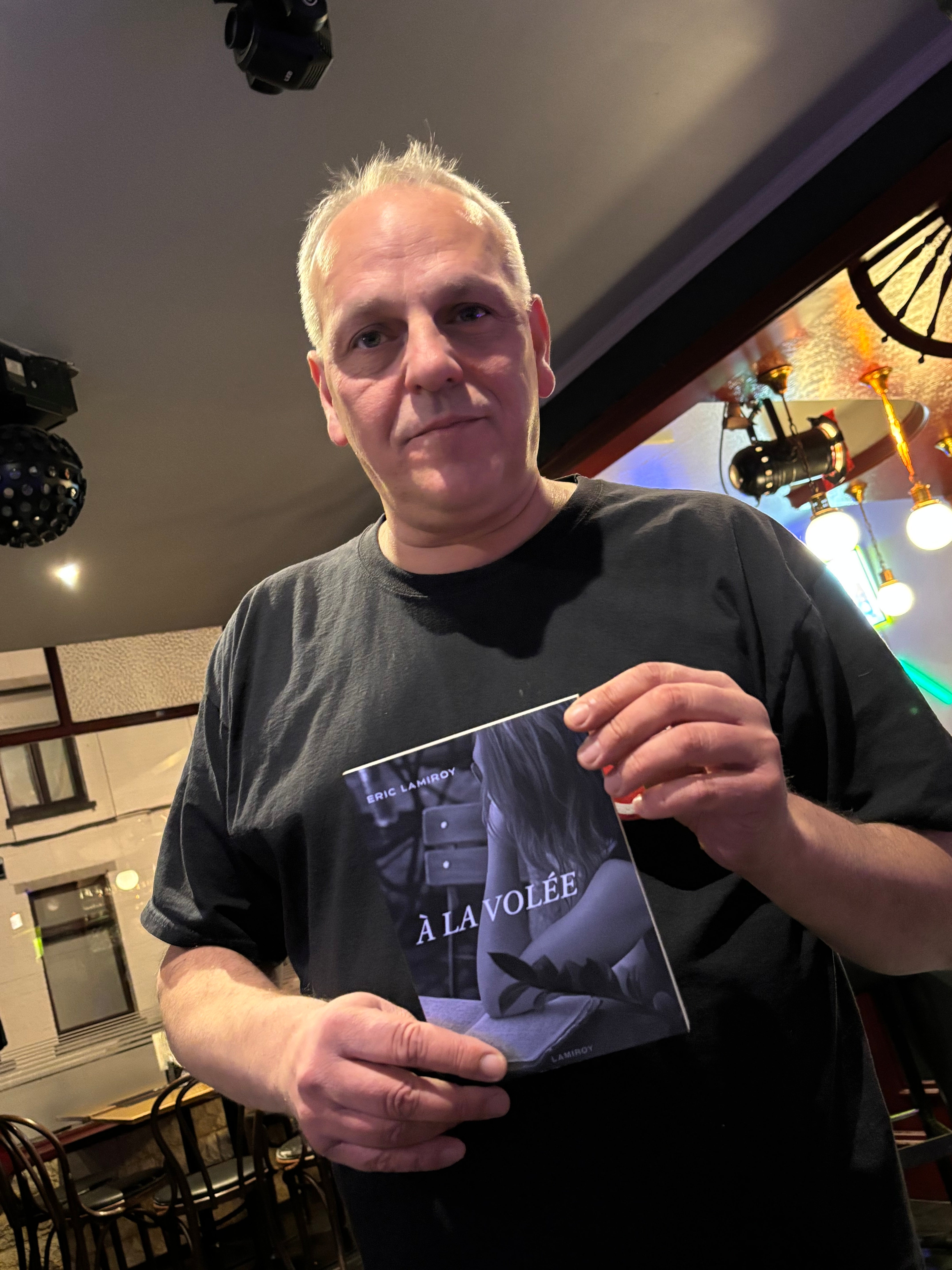 Quand un éditeur comme Eric Lamiroy enfile son costume d’auteur et se met à laisser courir sa plume en toute liberté, c’est un vrai délice. Car au fond, qu’est-ce donc que ce « À la volée » ? Le ton et donné dès les épigraphes. Offrir au lecteur des tranches de vie où l’auteur est toujours là, raconte ce qu’il vit et vit ce qu’il raconte, ici et maintenant, dans le présent… Un concert ici, un passage au restaurant là, un rendez-vous chez le coiffeur peut-être… Mais le délice de l’ensemble est qu’à la fois, tous, ses proches, nous y sommes, quelque part dans ce qui n’est pas tout à fait des anecdotes et un bon morceau de réalité, et à la fois, c’est un plaisir à lire pour un quidam qui ne connaît aucun des personnages des événements.