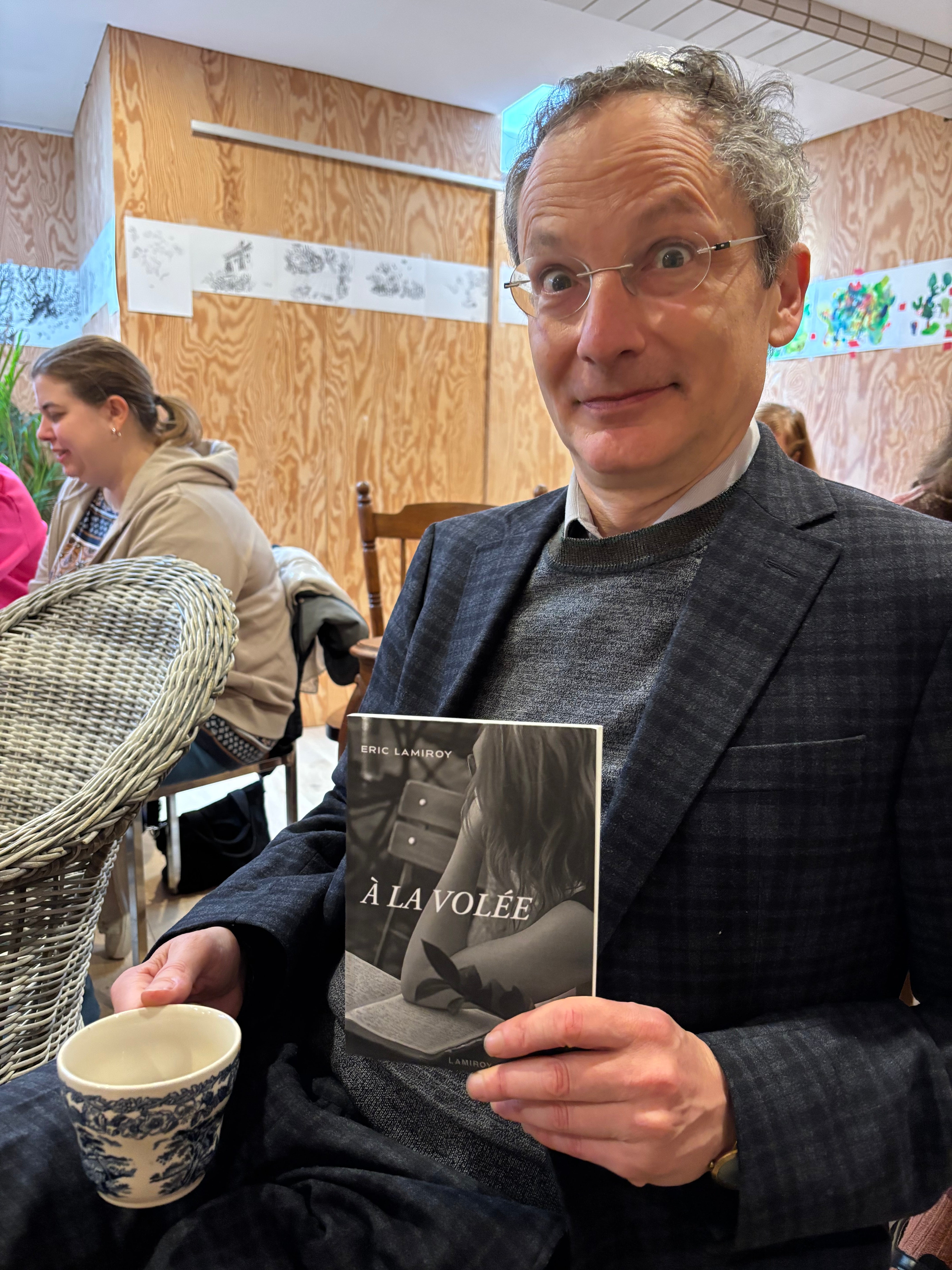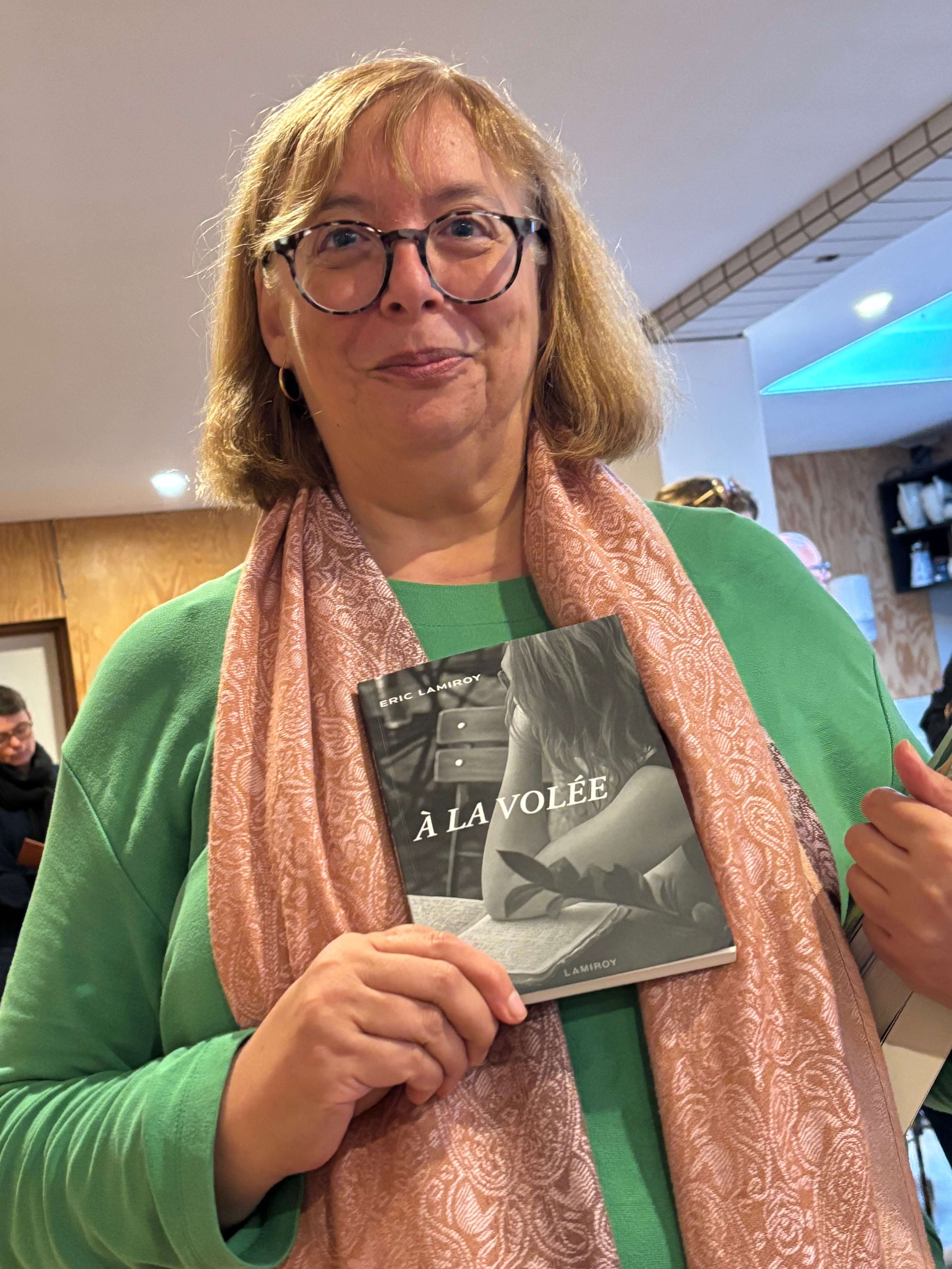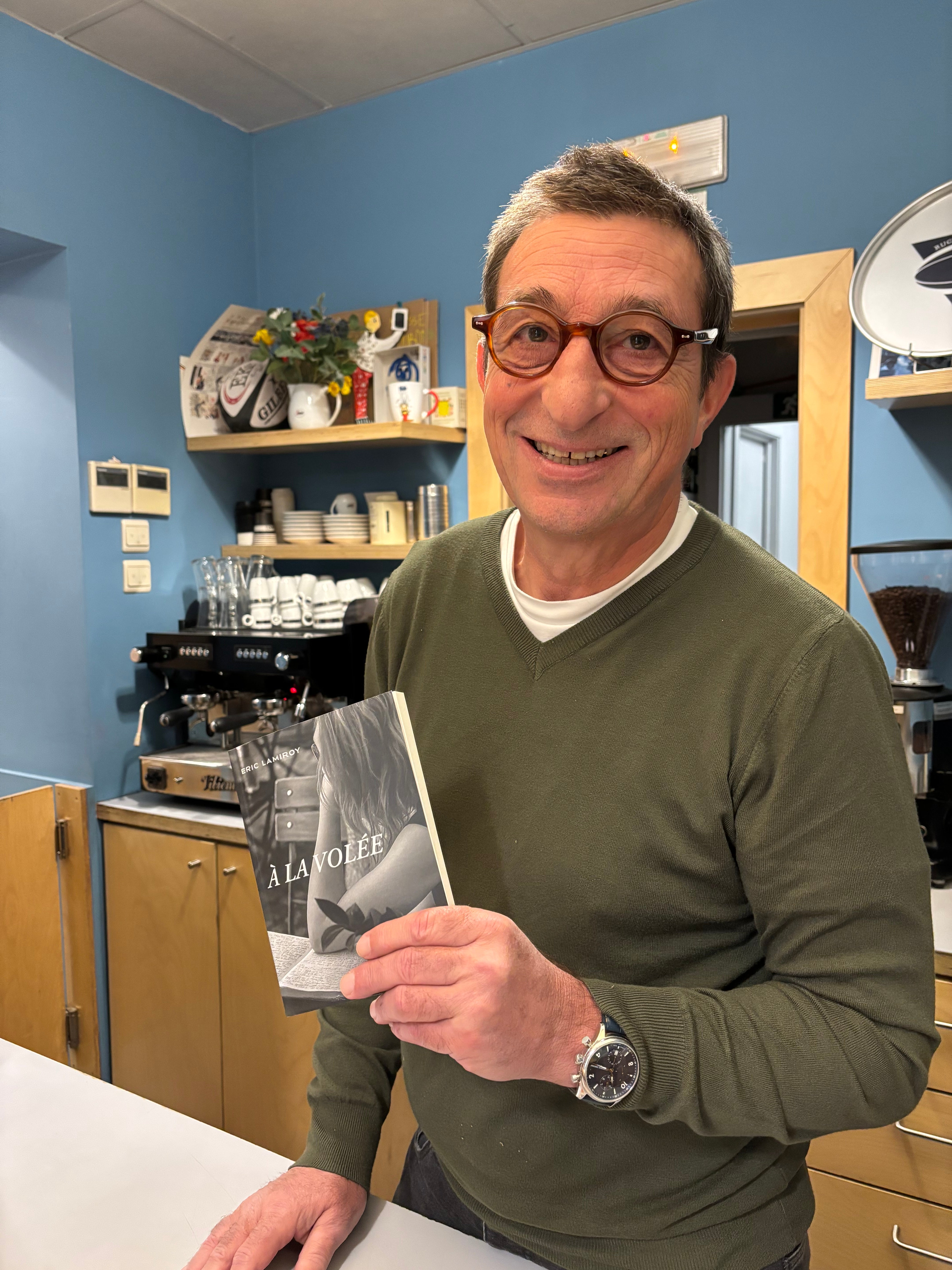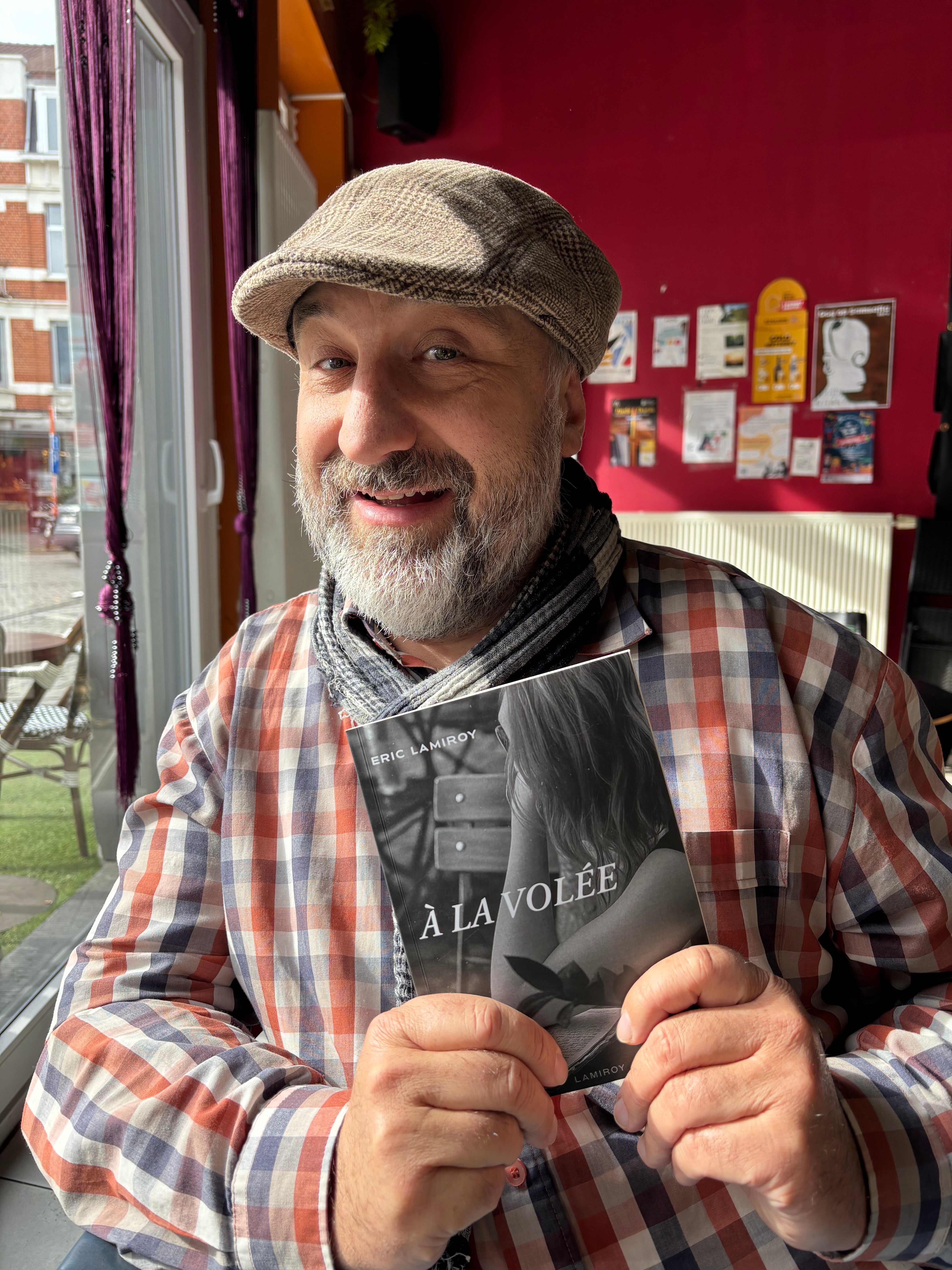 Quand un éditeur comme Eric Lamiroy enfile son costume d’auteur et se met à laisser courir sa plume en toute liberté, c’est un vrai délice. Car au fond, qu’est-ce donc que ce « À la volée » ? Le ton et donné dès les épigraphes. Offrir au lecteur des tranches de vie où l’auteur est toujours là, raconte ce qu’il vit et vit ce qu’il raconte, ici et maintenant, dans le présent… Un concert ici, un passage au restaurant là, un rendez-vous chez le coiffeur peut-être… Mais le délice de l’ensemble est qu’à la fois, tous, ses proches, nous y sommes, quelque part dans ce qui n’est pas tout à fait des anecdotes et un bon morceau de réalité, et à la fois, c’est un plaisir à lire pour un quidam qui ne connaît aucun des personnages des événements.