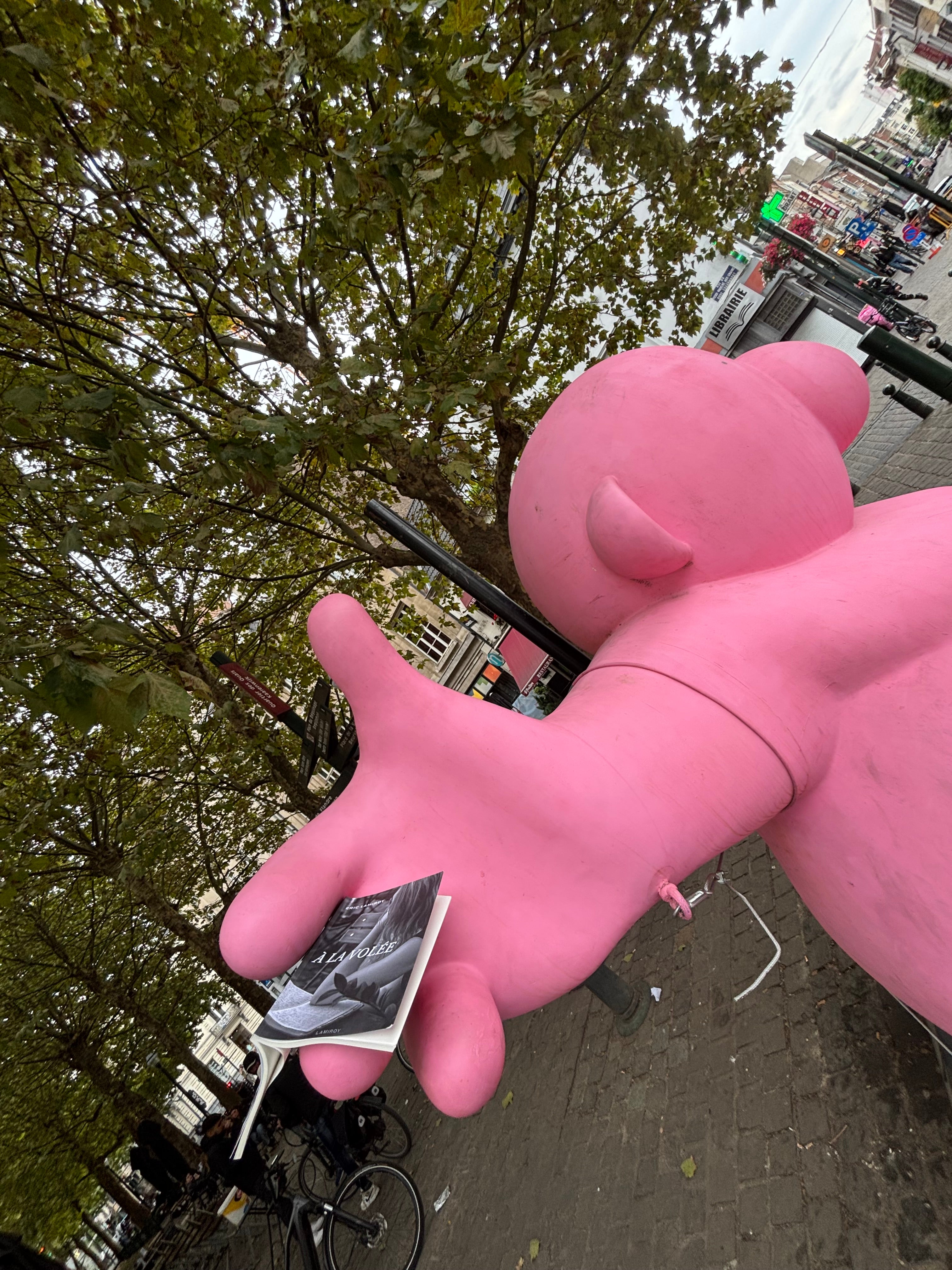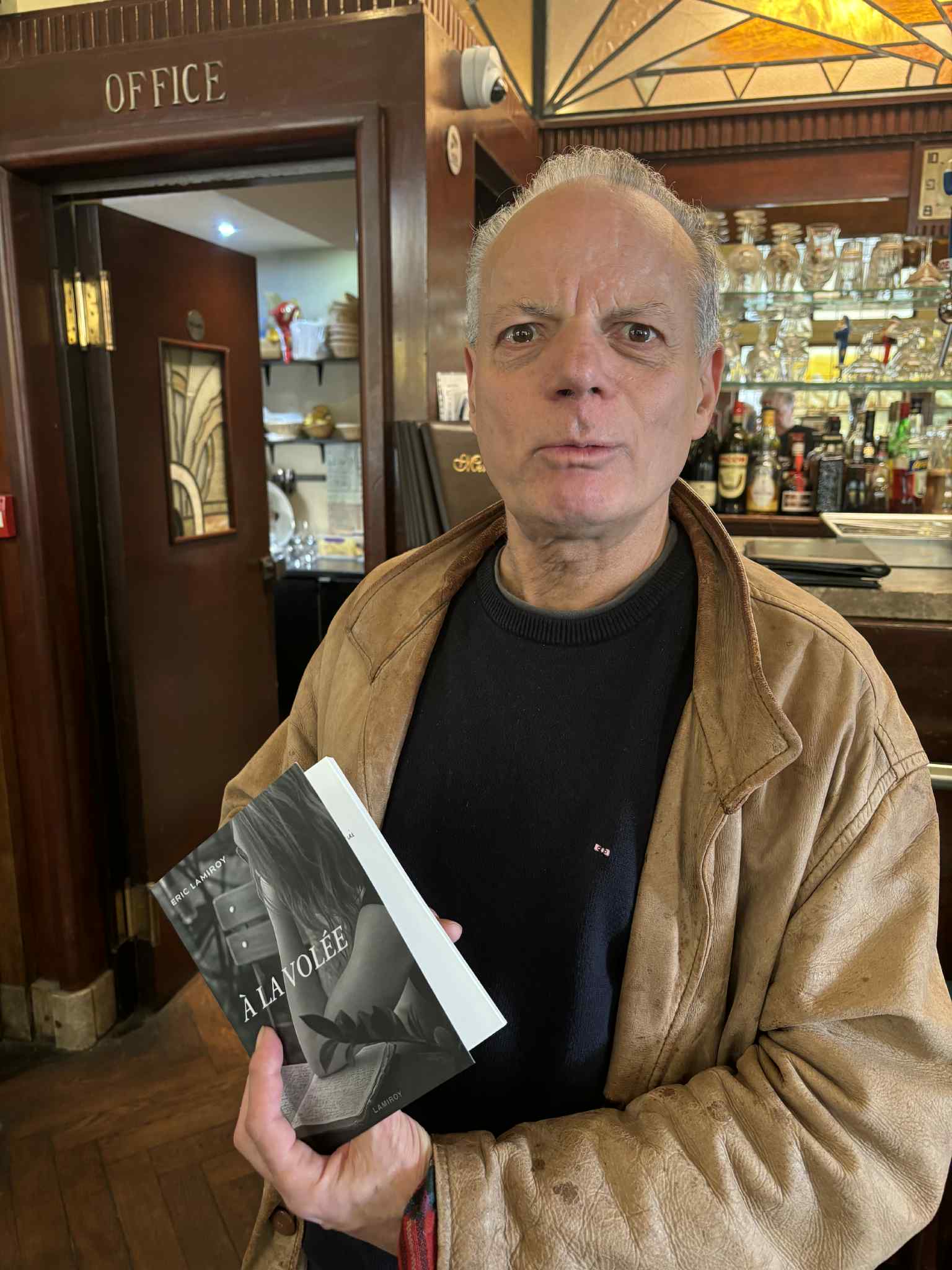 Il suffit d’un clic sur le site du podcast Couvre-livre pour y écouter ces enregistrements, dans la liste desquels on retrouve bien sûr quelques protagonistes de À la volée : l’ami de toujours et directeur littéraire aujourd’hui de la maison Lamiroy, Gaëtan Faucer, Joske Maelbeek, Alain Magerotte, Marc Danval… Des (fausses) confidences, transmises avec le détachement que permet la douceur de l’humour, jalonnent le récit : les double coca zéro servis dans des verres à Duvel, la fascination pour l’Atomium, - un attachement féroce au vestige de 58 au point de l’avoir tatoué sur le poignet-, des échanges avec la presse littéraire (Jean-Claude, Joëlle S.), des rencontres en librairie, le combat contre le surpoids…
