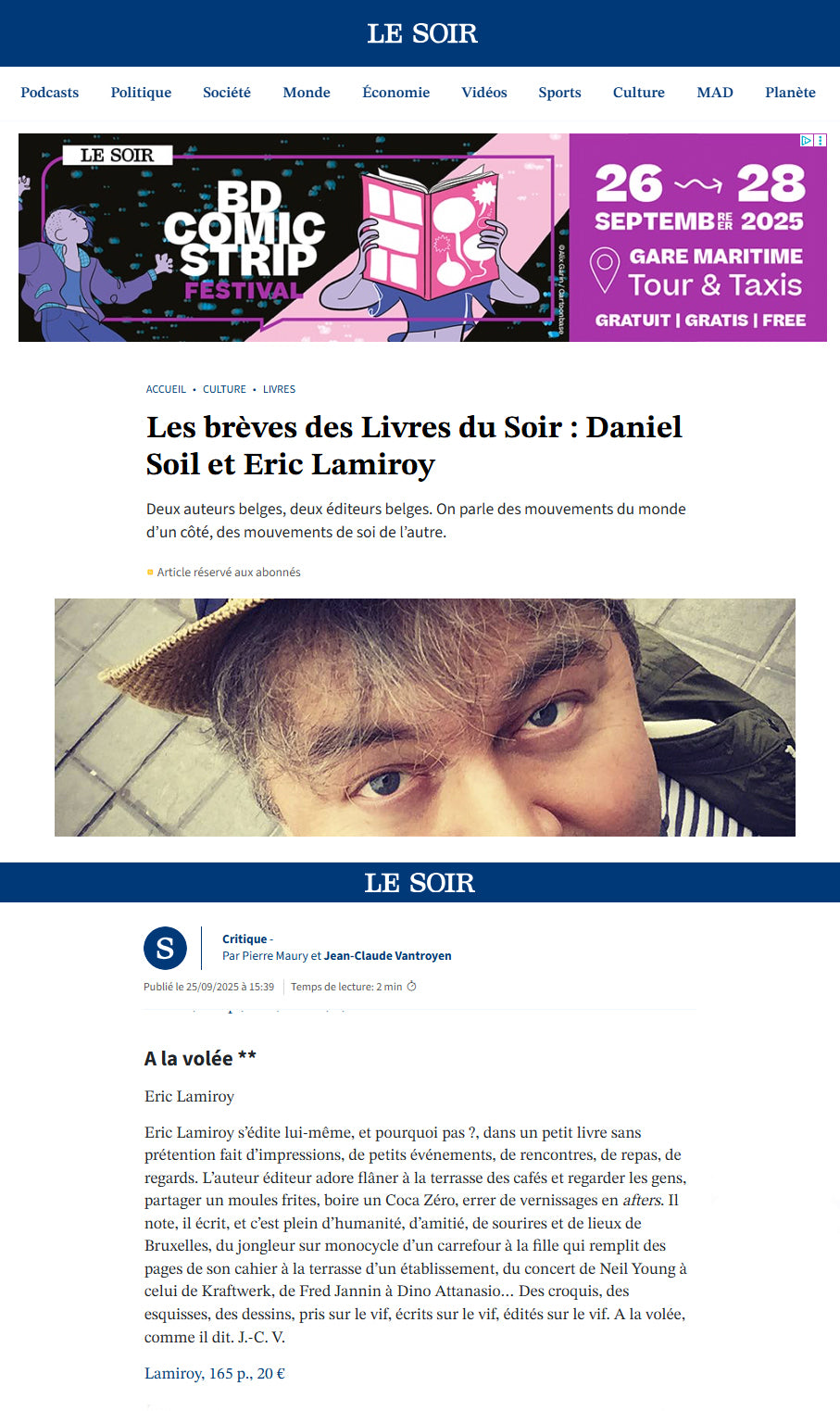 • Dimanche 21 septembre de 10h à 18h au Festival du livre à Jette